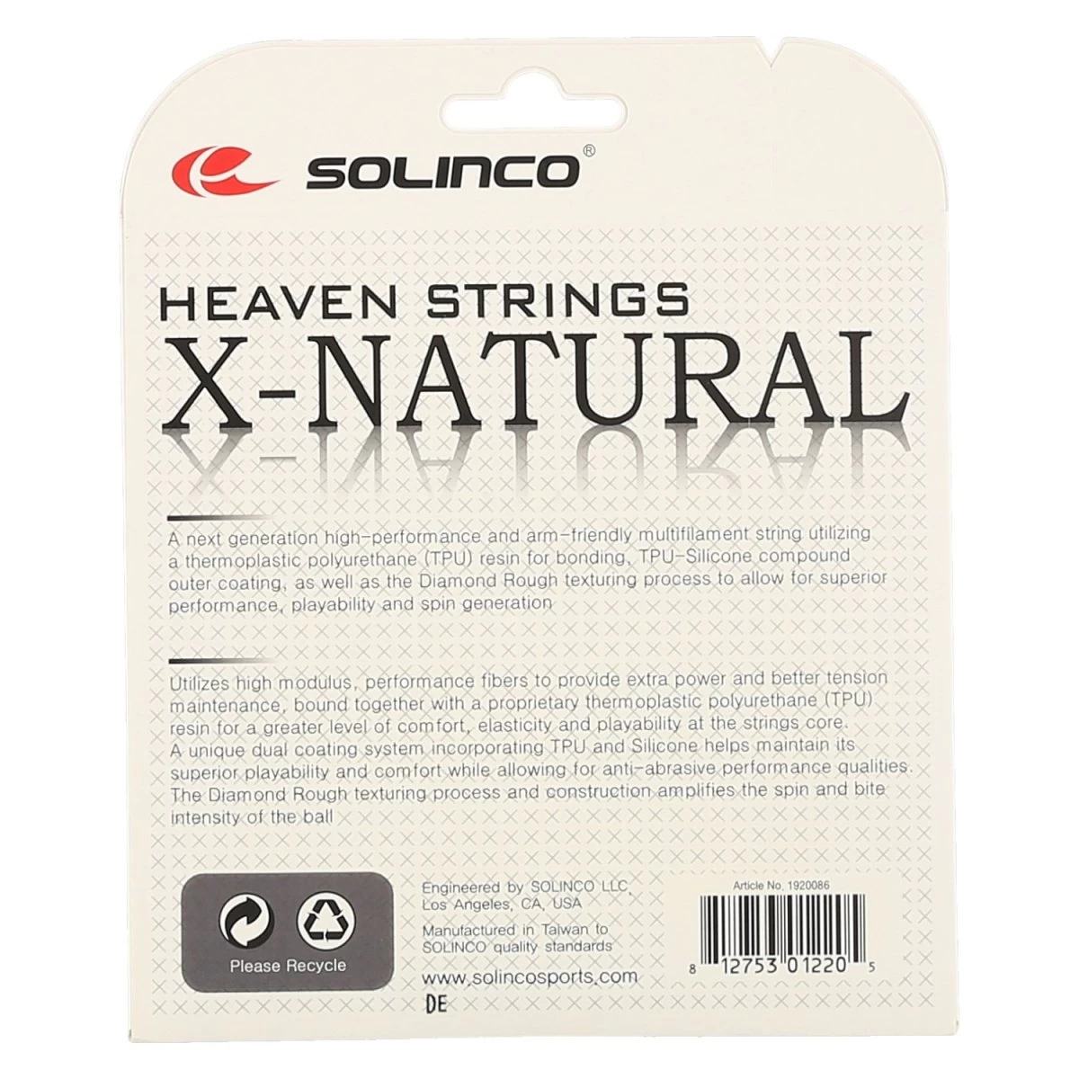 - die TPU-Silicon-Beschichtung der Saite führt zusammen mit dem Diamond Rough Oberflächenstrukturierungsprozeß zu hoher Spannungskonstanz und gleichbleibenden Eigenschaften, zu geringerer Reibung an den Kreuzungspunkten und zu einer sehr guter Spinannahme