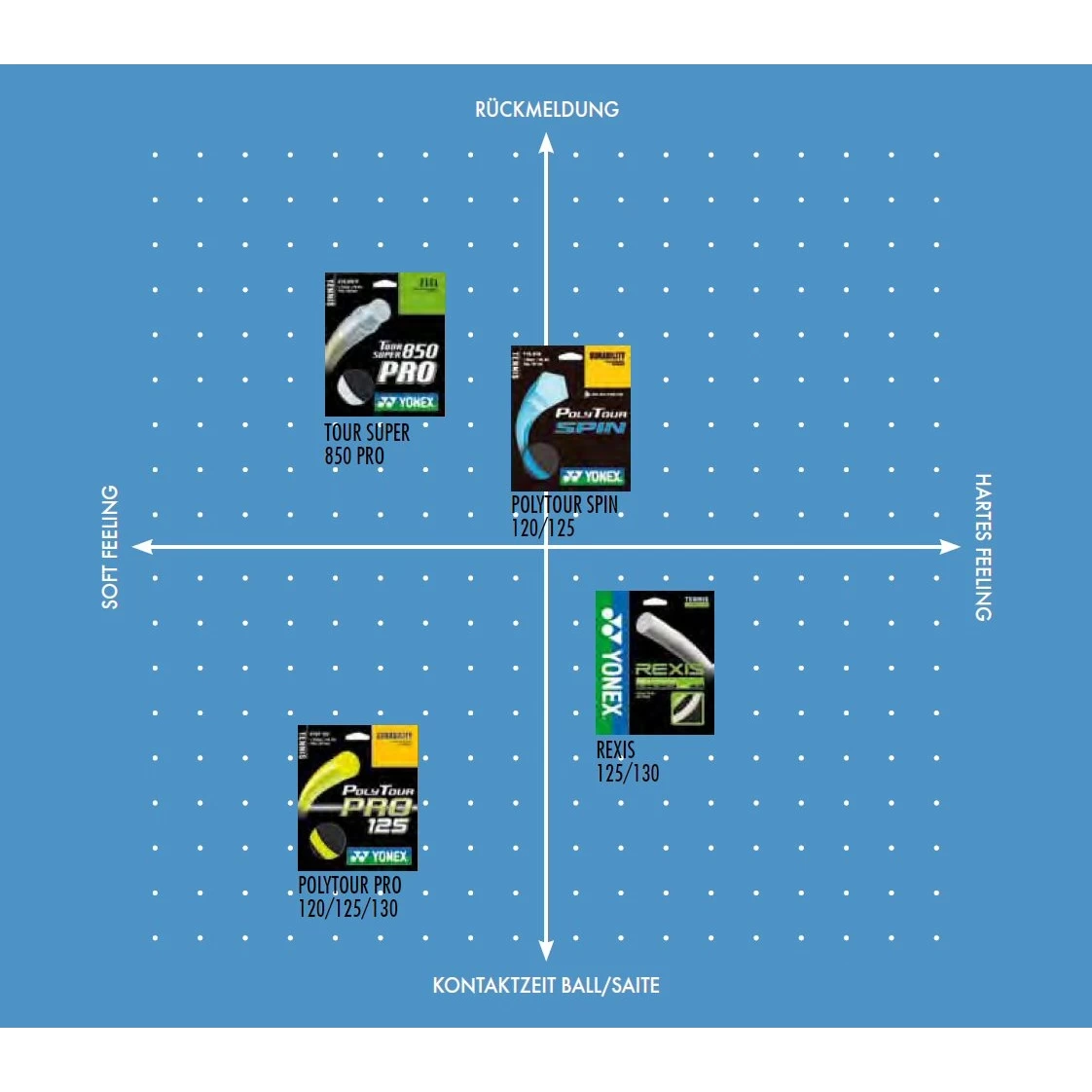 - dank innovativem „FRF“ (Fusion of Resin Filament) Produktionsverfahren sorgt die neue REXIS Saite für langanhaltende Power und hohe Haltbarkeit